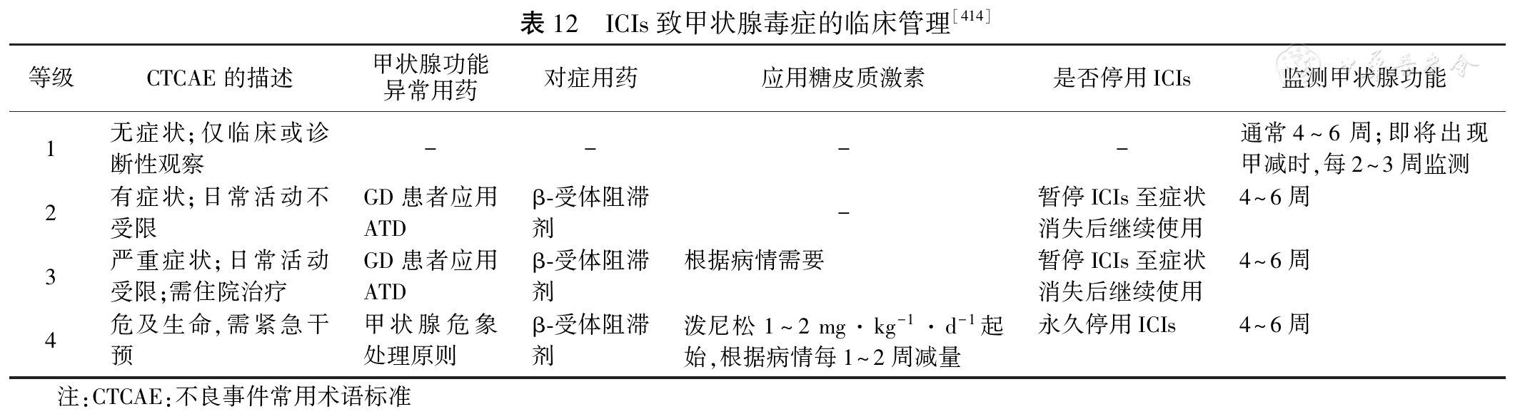 鉴于ATDs之间存在交叉反应,应用一种ATDs导致的粒细胞缺乏症,禁用其他种类的ATDs[102]。治疗包括停用ATDs、给予支持治疗,应用广谱抗生素和重组人粒细胞集落刺激因子(rhG-CSF)或重组人粒细胞-巨噬细胞集落刺激因子(rhGM-CSF)。非随机研究表明,rhG-CSF具有缩短白细胞恢复正常的时间、缩短抗生素治疗时间及住院时长的效果[98]。糖皮质激素治疗存在争议[103]。