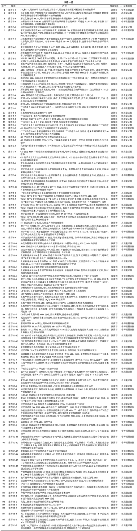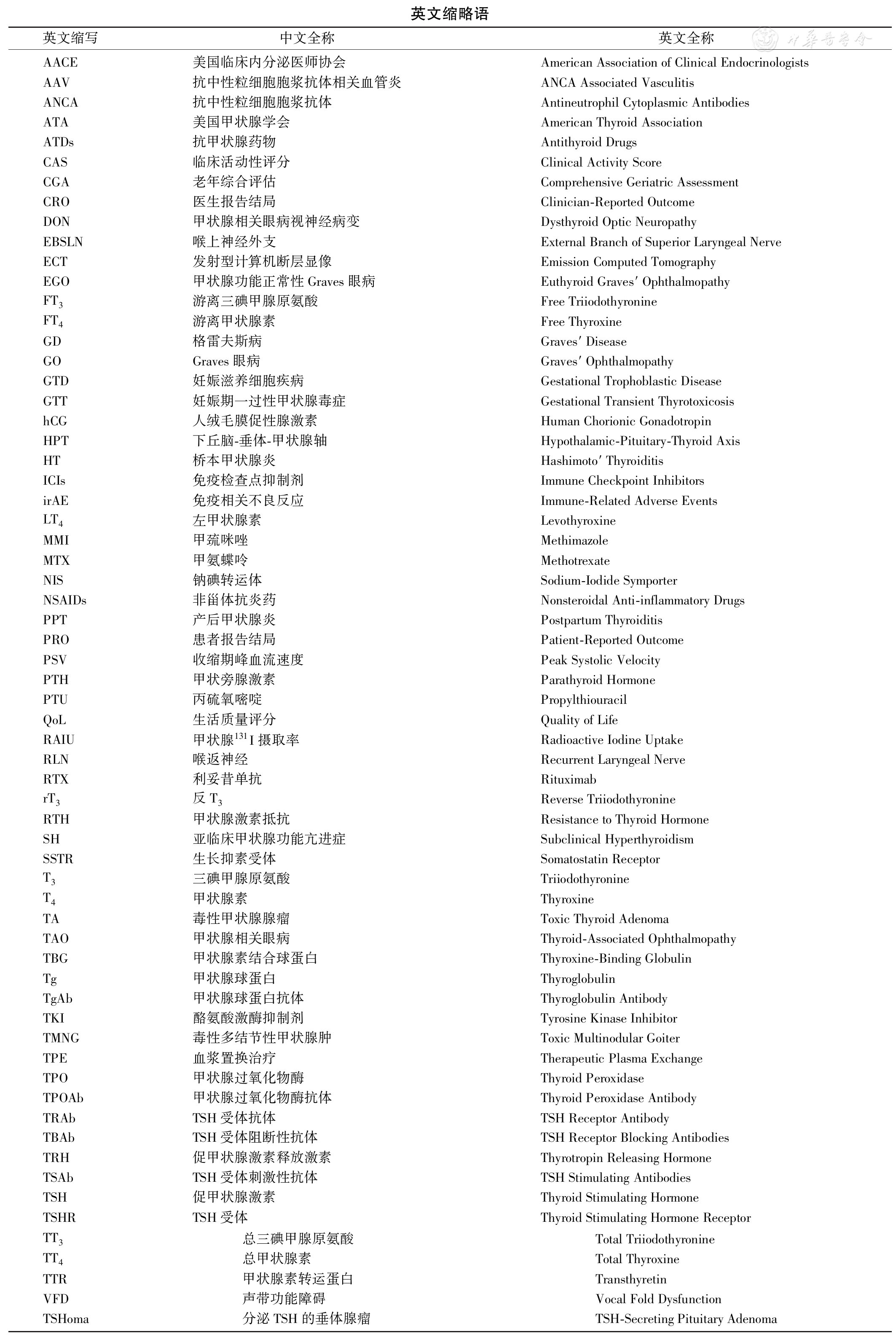 面对众多的甲亢患者以及甲亢导致的危害,临床亟需对甲亢进行规范化管理。2007年,我国内分泌专家联合核医学专家制定了首部《中国甲状腺疾病诊治指南》[14],其中包括有关甲亢诊治的推荐意见。这部甲状腺疾病诊治综合性指南,在全国得到了广泛的推广,对指导临床医生规范化诊疗甲状腺疾病发挥了积极的推动作用。自指南发表之后的15年间,甲状腺毒症和GD的诊断和治疗领域进展迅速,发表了大量的流行病学、临床和基础研究的文章,为国际甲亢相关指南的不断更新提供了循证医学证据。2016年美国甲状腺学会(ATA)修订了2011年ATA和美国临床内分泌医师协会(AACE)联合制定的甲亢指南,相继又有很多国家的学会制定了甲亢相关的指南[15]。