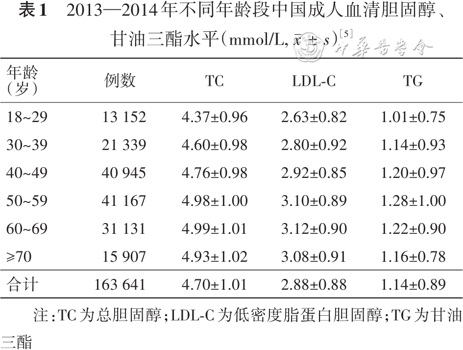 [5] Zhang M, Deng Q, Wang L, et al. Prevalence of dyslipidemia and achievement of low-density lipoprotein cholesterol targets in Chinese adults: a nationally representative survey of 163, 641 adults[J]. Int J Cardiol, 2018, 260:196-203. DOI: 10.1016/j.ijcard.2017.12.069.