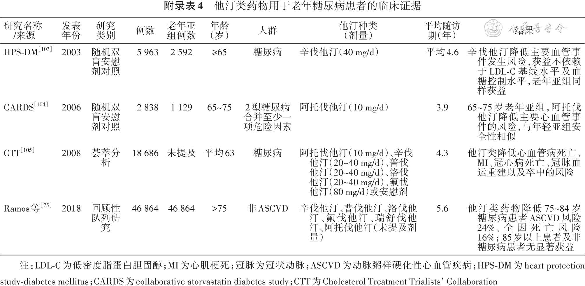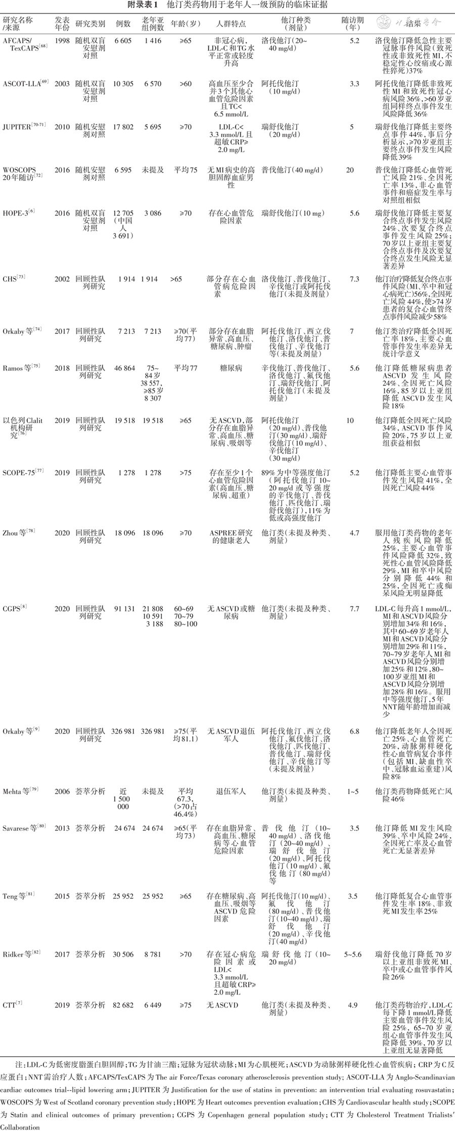[81] Teng M, Lin L, Zhao YJ, et al. Statins for primary prevention of cardiovascular disease in elderly patients: systematic review and meta-analysis[J]. Drugs Aging, 2015, 32(8): 649-661.DOI: 10.1007/s40266-015-0290-9.