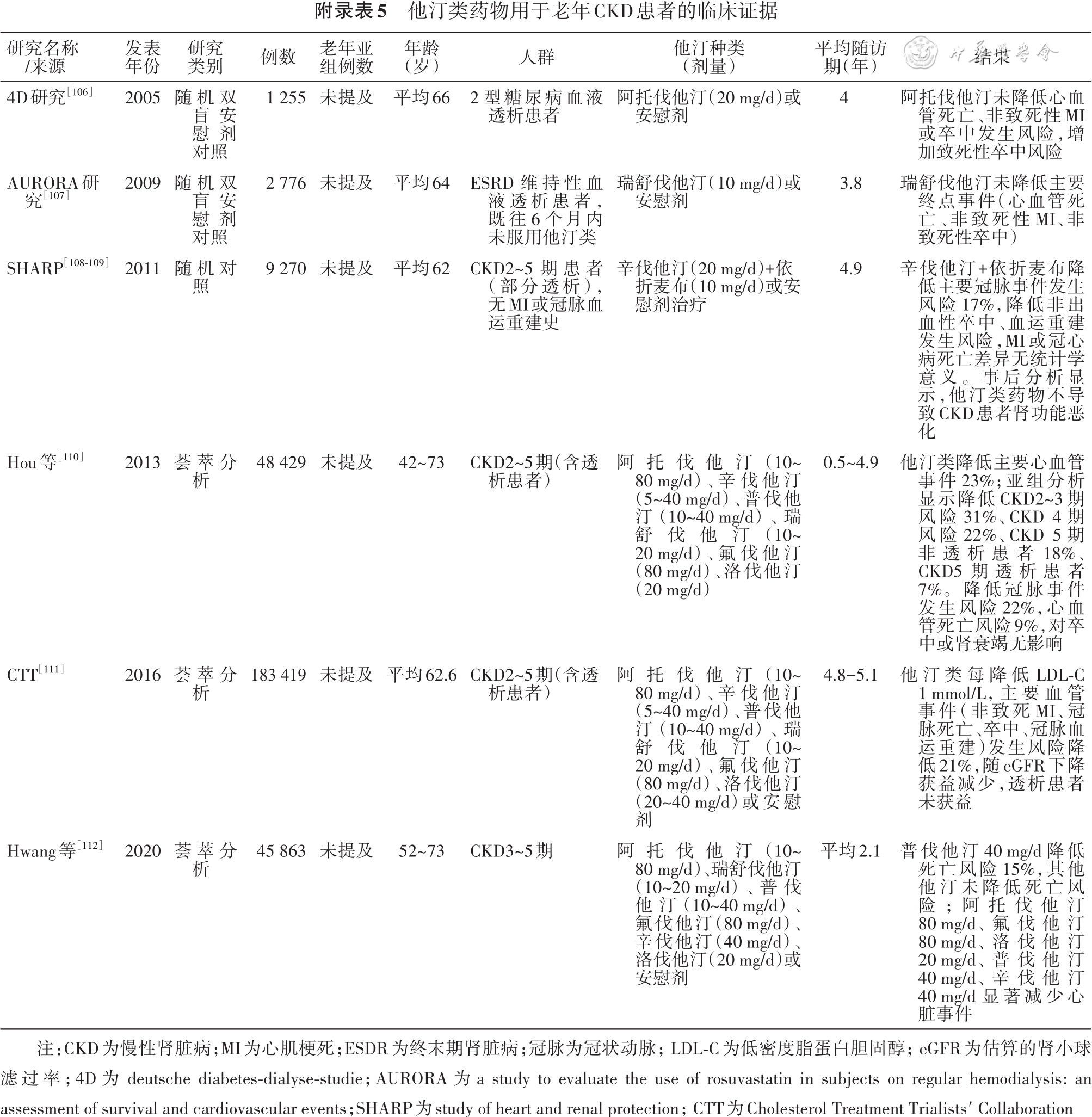 [112] Hwang SD, Kim K, Kim YJ, et al. Effect of statins on cardiovascular complications in chronic kidney disease patients: a network meta-analysis[J]. Medicine (Baltimore), 2020, 99(22):e20061. DOI: 10.1097/MD.0000000000020061.
