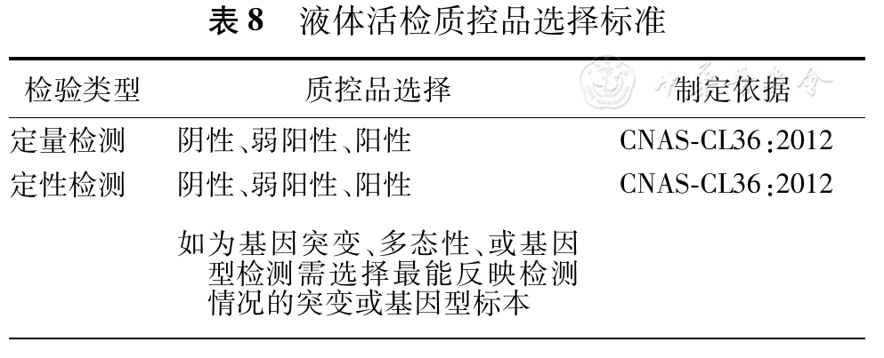 质控品选择在质量管理中具有关键性作用。应按照定性或定量的实验目的选择合适的质控品,以期达到理想的质量管理质量。质控品选择标准如表8所示。